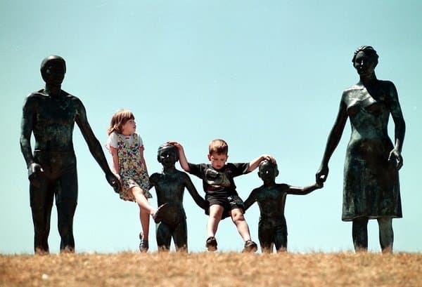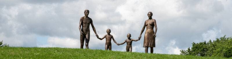 In 1966 he founded and was the principal designer for a family business, Hopfensperger Art Studios. Guided by the steady business hand of his co-owner and spouse, Mary Rose, the studio earned a reputation for exceptional craftsmanship and creativity in the Great Lakes area. His highly distinctive architectural glass installations employ rich and varied interplays of color, form, and light to dramatic effect in both religious and secular settings. Midland’s Blessed Sacrament Church, completed in 1967 and Jim’s home parish, contains some remarkable early examples of his glass window walls and commissioned sculptures. His bronze figures also grace the mid-Michigan landscape and include the noteworthy “Family” sculpture adjacent to the Midland Tridge, dedicated in 1982. Jim also found time to be the owner and manager of several area restaurants including the immensely popular Dog n Suds drive-in on South Saginaw Road from the 1960s into the early 1970s. In addition, he was an occasional but ambitious entrepreneur, imagining and launching projects such as the Mid-Michigan Pop Festival and Rock Concert in 1969.